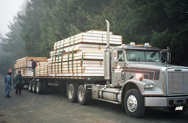 We ship our kits to your site by flat bed truck, and usually one to three truckloads are required, depending on house size and options chosen. Trucks can be unloaded by hand or using a forklift truck or other equipment.